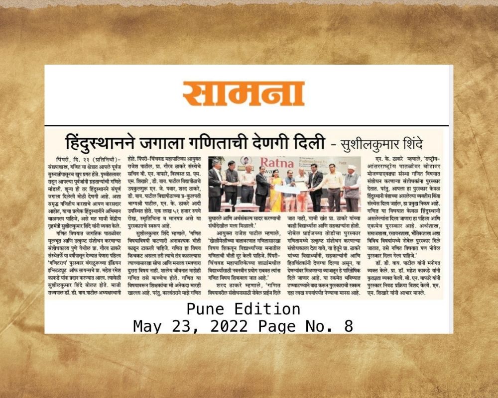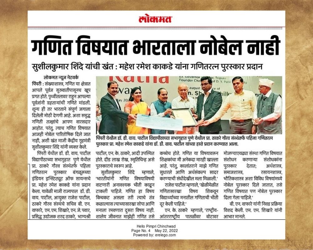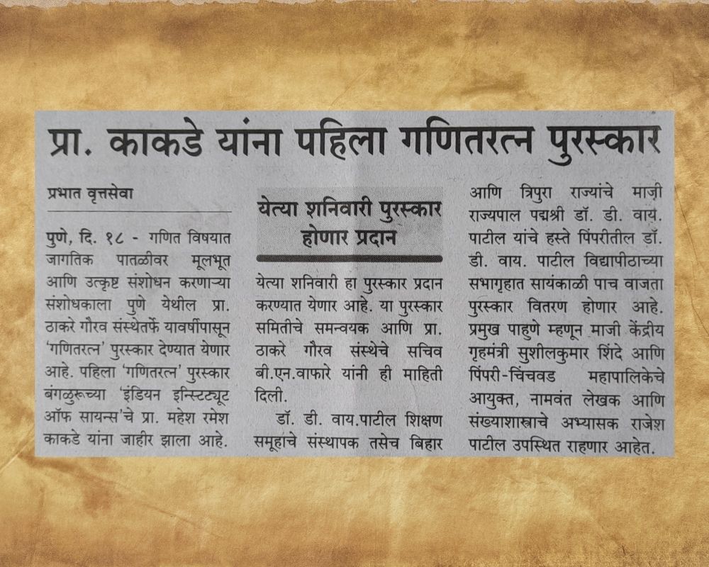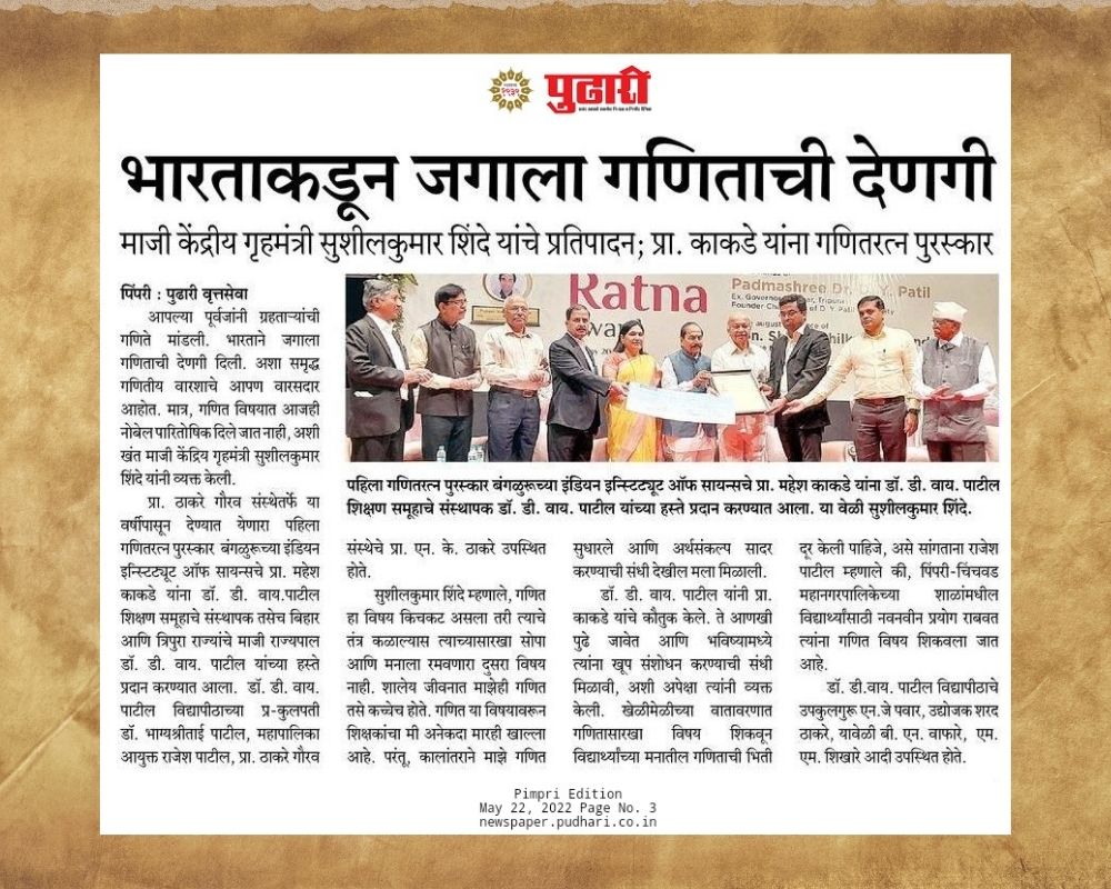 Prof. Kakde received the First Ganit Ratna Award (2022)